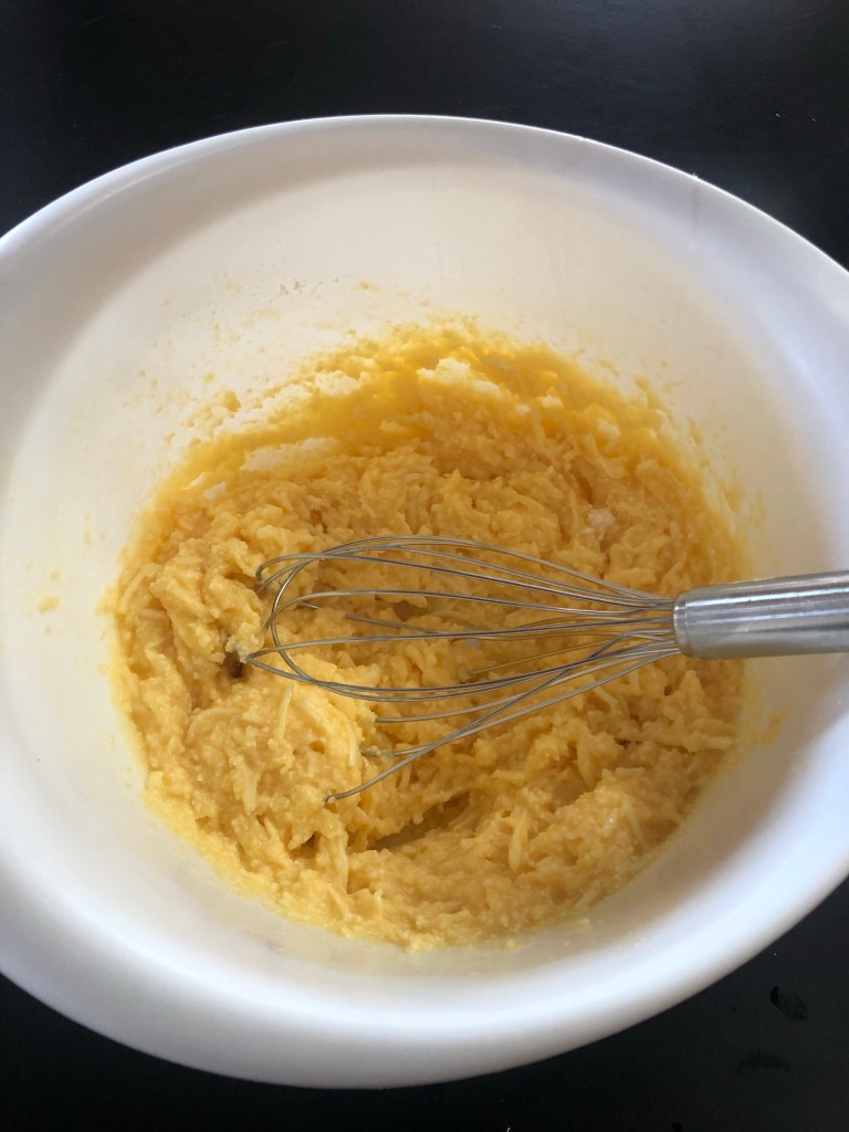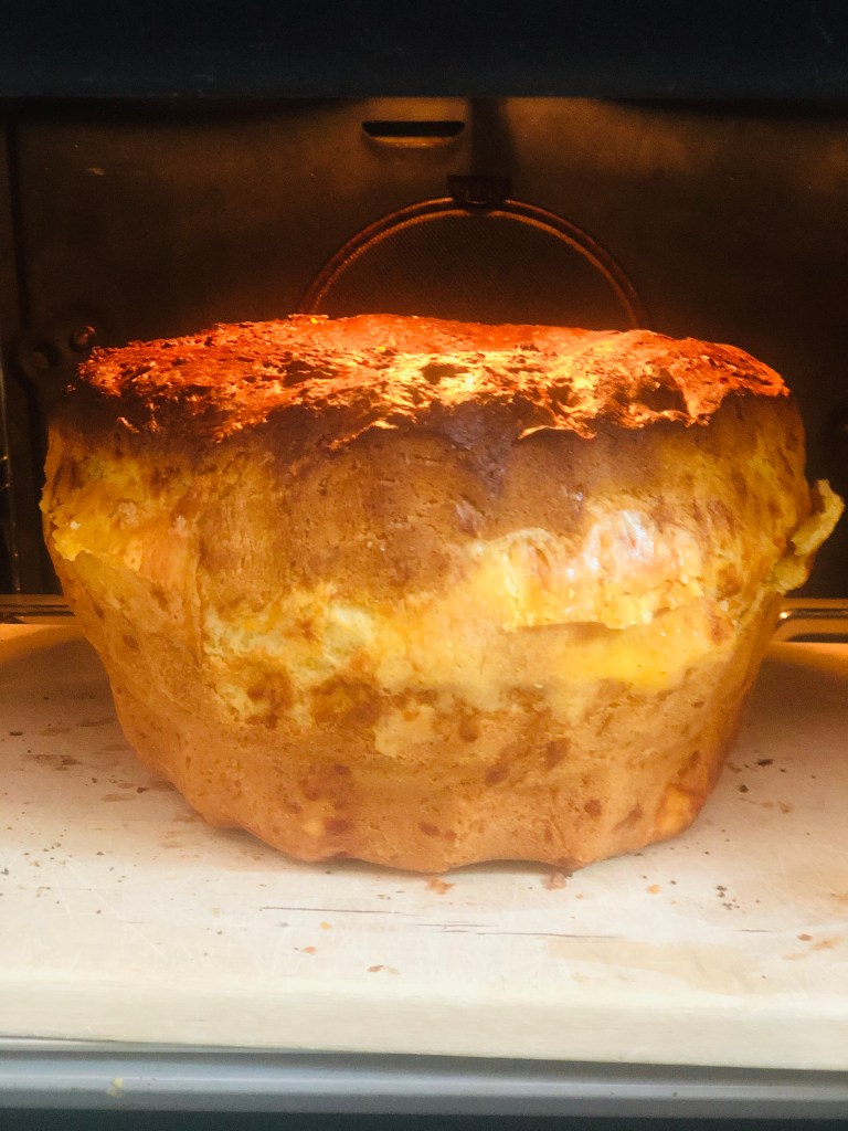 Hier ist das typische Rezept: Schlagen Sie die Eier mit einem Schneebesen und fügen Sie dann den Käse, die zuvor geschmolzene und abkühlende Butter, das Salz, die in der Milch gelöste Hefe und schließlich das Mehl hinzu.